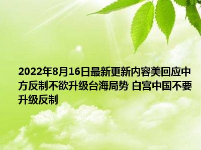 今天大家应该都在关注美回应中方反制不欲升级台海局势 白宫中国不要升级反制,那么很多小伙伴在关注的同时自然是想要了解到美回应中方反制不欲升级台海局势 白宫中国不要升级反制的具体来龙去脉了,新广小编今天也是特地在网络上搜集了一些相关的信息内容来分享给大家,感兴趣的小伙伴可以好好看下。