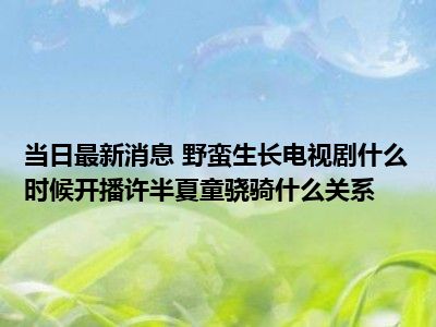 野蛮生长电视剧什么时候开播许半夏童骁骑什么关系现在是大家比较关注的,因为目前野蛮生长电视剧什么时候开播许半夏童骁骑什么关系的热度是相对比较高的,那么既然大家对此都比较感兴趣,小S也是特地到网上去查找了一些相关的信息,下面就由小S来把这些信息来分享给大家一起查阅吧。
