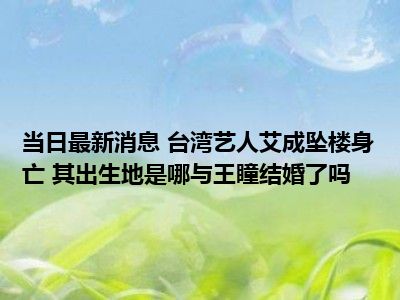 导读 台湾艺人艾成坠楼身亡 其出生地是哪与王瞳结婚了吗现在是大家比较关注的,因为目前台湾艺人艾成坠楼身亡 其出生地是哪与王瞳结婚了吗的