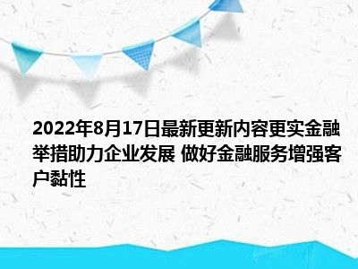 导读 今天大家应该都在关注更实金融举措助力企业发展 做好金融服务增强客户黏性,那么很多小伙伴在关注的同时自然是想要了解到更实金融举措助