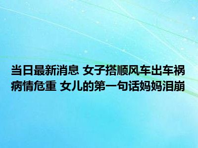 导读 女子搭顺风车出车祸病情危重 女儿的第一句话妈妈泪崩现在是大家比较关注的,因为目前女子搭顺风车出车祸病情危重 女儿的第一句话妈妈泪