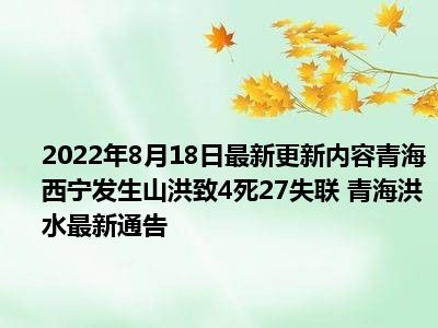 青海省应急管理厅网站8月18日消息,2022年8月18日7时03分许接中共西宁市委办公室报告,西宁市大通县发生山洪灾害造成4人死亡,27人失联。