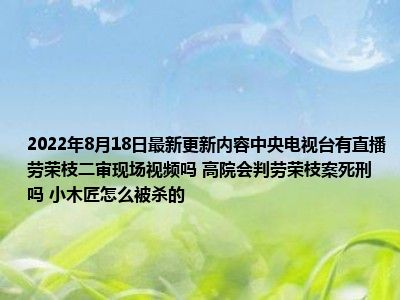 今天大家应该都在关注中央电视台有直播劳荣枝二审现场视频吗 高院会判劳荣枝案死刑吗 小木匠怎么被杀的,那么很多小伙伴在关注的同时自然是想要了解到中央电视台有直播劳荣枝二审现场视频吗 高院会判劳荣枝案死刑吗 小木匠怎么被杀的的具体来龙去脉了,新广小编今天也是特地在网络上搜集了一些相关的信息内容来分享给大家,感兴趣的小伙伴可以好好看下。