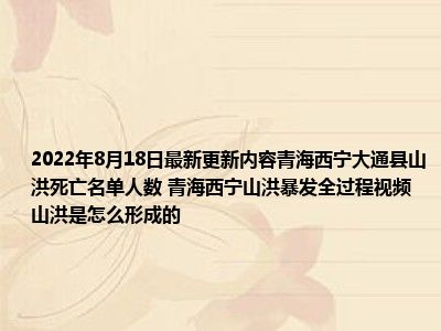 今天大家应该都在关注青海西宁大通县山洪死亡名单人数 青海西宁山洪暴发全过程视频 山洪是怎么形成的,那么很多小伙伴在关注的同时自然是想要了解到青海西宁大通县山洪死亡名单人数 青海西宁山洪暴发全过程视频 山洪是怎么形成的的具体来龙去脉了,新广小编今天也是特地在网络上搜集了一些相关的信息内容来分享给大家,感兴趣的小伙伴可以好好看下。