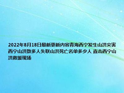 今天大家应该都在关注青海西宁发生山洪灾害 西宁山洪致多人失联山洪死亡名单多少人 直击西宁山洪救援现场,那么很多小伙伴在关注的同时自然是想要了解到青海西宁发生山洪灾害 西宁山洪致多人失联山洪死亡名单多少人 直击西宁山洪救援现场的具体来龙去脉了,新广小编今天也是特地在网络上搜集了一些相关的信息内容来分享给大家,感兴趣的小伙伴可以好好看下。