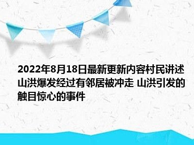 今天大家应该都在关注村民讲述山洪爆发经过有邻居被冲走 山洪引发的触目惊心的事件,那么很多小伙伴在关注的同时自然是想要了解到村民讲述山洪爆发经过有邻居被冲走 山洪引发的触目惊心的事件的具体来龙去脉了,新广小编今天也是特地在网络上搜集了一些相关的信息内容来分享给大家,感兴趣的小伙伴可以好好看下。