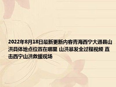 今天大家应该都在关注青海西宁大通县山洪具体地点位置在哪里 山洪暴发全过程视频 直击西宁山洪救援现场,那么很多小伙伴在关注的同时自然是想要了解到青海西宁大通县山洪具体地点位置在哪里 山洪暴发全过程视频 直击西宁山洪救援现场的具体来龙去脉了,新广小编今天也是特地在网络上搜集了一些相关的信息内容来分享给大家,感兴趣的小伙伴可以好好看下。