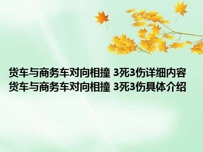 1、想必大家现在对于货车与商务车对向相撞 3死3伤方面的信息都是比较想了解的吧,那么针对于货车与商务车对向相撞 3死3伤方面的信息,小西自然是收集了一些相关方面的信息,那么如果您感兴趣的话,可以看下下面小西为大家收集到与货车与商务车对向相撞 3死3伤相关的信息吧。