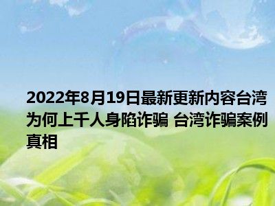 今天大家应该都在关注台湾为何上千人身陷诈骗 台湾诈骗案例真相,那么很多小伙伴在关注的同时自然是想要了解到台湾为何上千人身陷诈骗 台湾诈骗案例真相的具体来龙去脉了,新广小编今天也是特地在网络上搜集了一些相关的信息内容来分享给大家,感兴趣的小伙伴可以好好看下。