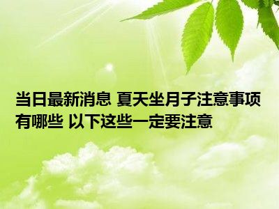 夏天坐月子注意事项有哪些 以下这些一定要注意现在是大家比较关注的,因为目前夏天坐月子注意事项有哪些 以下这些一定要注意的热度是相对比较高的,那么既然大家对此都比较感兴趣,小S也是特地到网上去查找了一些相关的信息,下面就由小S来把这些信息来分享给大家一起查阅吧。