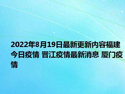 今天大家应该都在关注福建今日疫情 晋江疫情最新消息 厦门疫情,那么很多小伙伴在关注的同时自然是想要了解到福建今日疫情 晋江疫情最新消息 厦门疫情的具体来龙去脉了,新广小编今天也是特地在网络上搜集了一些相关的信息内容来分享给大家,感兴趣的小伙伴可以好好看下。