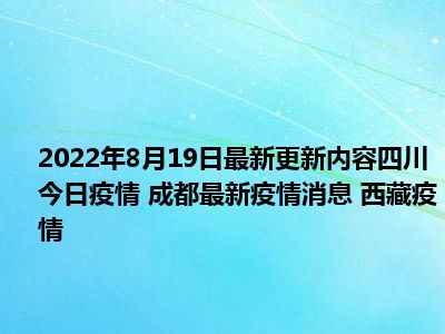 今天大家应该都在关注四川今日疫情 成都最新疫情消息 西藏疫情,那么很多小伙伴在关注的同时自然是想要了解到四川今日疫情 成都最新疫情消息 西藏疫情的具体来龙去脉了,新广小编今天也是特地在网络上搜集了一些相关的信息内容来分享给大家,感兴趣的小伙伴可以好好看下。
