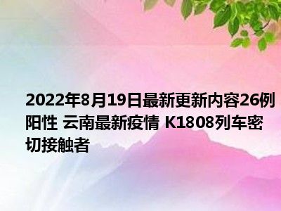 今天大家应该都在关注26例阳性 云南最新疫情 K1808列车密切接触者,那么很多小伙伴在关注的同时自然是想要了解到26例阳性 云南最新疫情 K1808列车密切接触者的具体来龙去脉了,新广小编今天也是特地在网络上搜集了一些相关的信息内容来分享给大家,感兴趣的小伙伴可以好好看下。