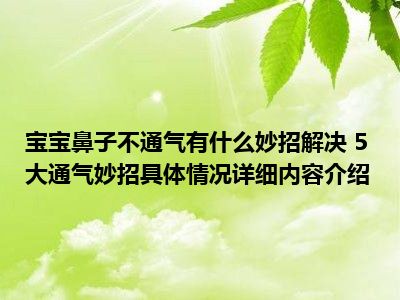 导读 想必大家现在对于宝宝鼻子不通气有什么妙招解决 5大通气妙招方面的消息都是比较想了解的吧,那么针对于宝宝鼻子不通气有什么妙招解决 5