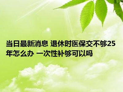 - 2022-08-24今日最新更新内容 退休时医保交不够25年怎么办 一次性补够可以吗