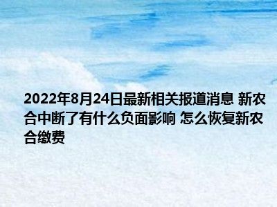 - 2022-08-24当日最新消息 新农合中断了有什么负面影响 怎么恢复新农合缴费