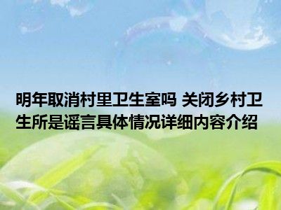 想必大家现在对于明年取消村里卫生室吗 关闭乡村卫生所是谣言方面的消息都是比较想了解的吧,那么针对于明年取消村里卫生室吗 关闭乡村卫生所是谣言方面的消息,小西自然是收集了一些相关方面的消息,那么如果您感兴趣的话,可以看下下面小西为大家收集到与明年取消村里卫生室吗 关闭乡村卫生所是谣言相关的消息吧。