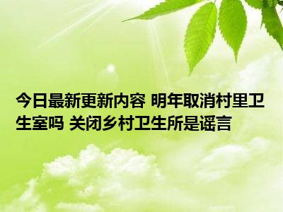 目前明年取消村里卫生室吗 关闭乡村卫生所是谣言的关注度特别高,热度非常高,这也证明大家现在都在关注这个事情,那么具体的明年取消村里卫生室吗 关闭乡村卫生所是谣言的事情是怎么回事呢,小编收集了一些相关的内容来给大家一起查阅一下把。