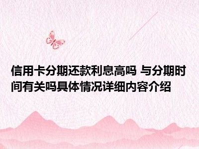 导读 想必大家现在对于信用卡分期还款利息高吗 与分期时间有关吗方面的消息都是比较想了解的吧,那么针对于信用卡分期还款利息高吗 与分期时...