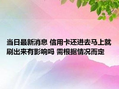 导读 信用卡还进去马上就刷出来有影响吗 需根据情况而定现在是大家比较关注的,因为目前信用卡还进去马上就刷出来有影响吗 需根据情况而定的...