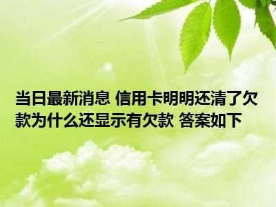 导读 信用卡明明还清了欠款为什么还显示有欠款 答案如下现在是大家比较关注的,因为目前信用卡明明还清了欠款为什么还显示有欠款 答案如下的...
