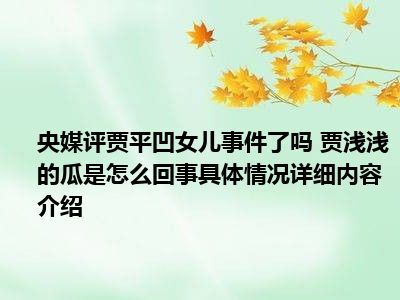 - 央媒评贾平凹女儿事件了吗 贾浅浅的瓜是怎么回事具体情况详细内容介绍