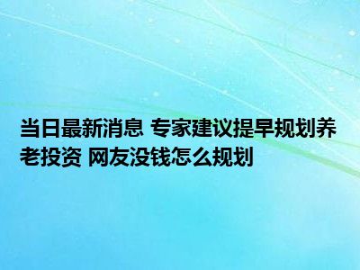 导读 专家:建议提早规划养老投资 网友:没钱怎么规划现在是大家比较关注的,因为目前专家:建议提早规划养老投资 网友:没钱怎么规划的热度...