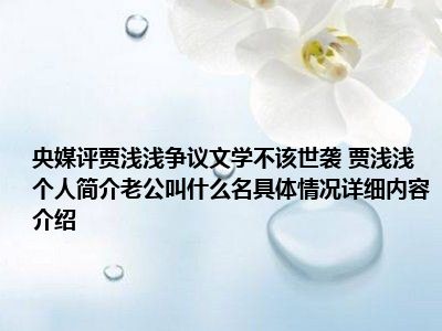 想必大家现在对于央媒评贾浅浅争议:文学不该世袭 贾浅浅个人简介老公叫什么名方面的消息都是比较想了解的吧,那么针对于央媒评贾浅浅争议:文学不该世袭 贾浅浅个人简介老公叫什么名方面的消息,小西自然是收集了一些相关方面的消息,那么如果您感兴趣的话,可以看下下面小西为大家收集到与央媒评贾浅浅争议:文学不该世袭 贾浅浅个人简介老公叫什么名相关的消息吧。