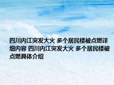 1、想必大家现在对于四川内江突发大火 多个居民楼被点燃方面的信息都是比较想了解的吧,那么针对于四川内江突发大火 多个居民楼被点燃方面的信息,小西自然是收集了一些相关方面的信息,那么如果您感兴趣的话,可以看下下面小西为大家收集到与四川内江突发大火 多个居民楼被点燃相关的信息吧。