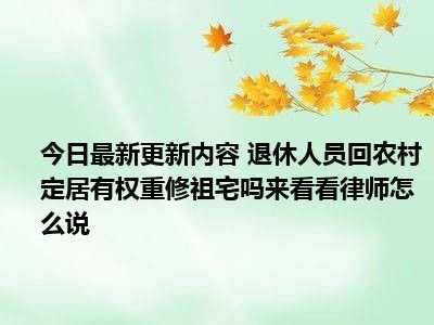 目前退休人员回农村定居有权重修祖宅吗来看看律师怎么说的关注度特别高,热度非常高,这也证明大家现在都在关注这个事情,那么具体的退休人员回农村定居有权重修祖宅吗来看看律师怎么说的事情是怎么回事呢,小编收集了一些相关的内容来给大家一起查阅一下把。