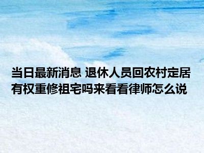 - 2022-08-24今日最新更新内容 退休人员回农村定居有权重修祖宅吗来看看律师怎么说
