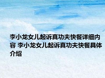 1、想必大家现在对于李小龙女儿起诉真功夫快餐方面的信息都是比较想了解的吧,那么针对于李小龙女儿起诉真功夫快餐方面的信息,小西自然是收集了一些相关方面的信息,那么如果您感兴趣的话,可以看下下面小西为大家收集到与李小龙女儿起诉真功夫快餐相关的信息吧。