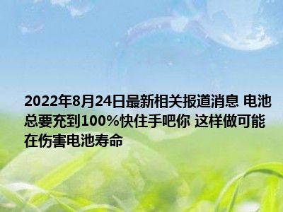 - 2022-08-24今日最新更新内容 电池总要充到100%快住手吧你 这样做可能在伤害电池寿命