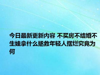 目前不买房、不结婚、不生娃,拿什么“拯救”年轻人摆烂究竟为何的关注度特别高,热度非常高,这也证明大家现在都在关注这个事情,那么具体的不买房、不结婚、不生娃,拿什么“拯救”年轻人摆烂究竟为何的事情是怎么回事呢,小编收集了一些相关的内容来给大家一起查阅一下把。