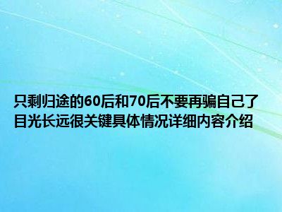 - 只剩归途的60后和70后不要再骗自己了 目光长远很关键具体情况详细内容介绍