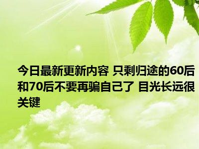 - 只剩归途的60后和70后不要再骗自己了 目光长远很关键具体情况详细内容介绍