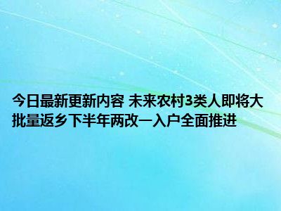 导读目前未来农村3类人即将大批量返乡下半年“两改一入户”全面推进的关注度特别高,热度非常高,这也证明大家现在都在关注这个事情,那么具...