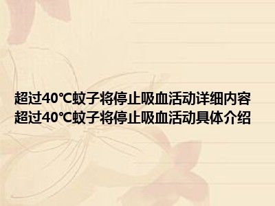 1、想必大家现在对于超过40℃蚊子将停止吸血活动方面的信息都是比较想了解的吧,那么针对于超过40℃蚊子将停止吸血活动方面的信息,小西自然是收集了一些相关方面的信息,那么如果您感兴趣的话,可以看下下面小西为大家收集到与超过40℃蚊子将停止吸血活动相关的信息吧。