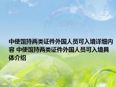 1、想必大家现在对于中使馆:持两类证件外国人员可入境方面的信息都是比较想了解的吧,那么针对于中使馆:持两类证件外国人员可入境方面的信息,小西自然是收集了一些相关方面的信息,那么如果您感兴趣的话,可以看下下面小西为大家收集到与中使馆:持两类证件外国人员可入境相关的信息吧。