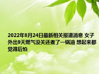 - 2022年8月24日最新相关报道消息 女子外出9天燃气没关还煮了一锅油 想起来都觉得后怕