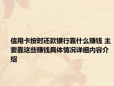 - 信用卡按时还款银行靠什么赚钱 主要靠这些赚钱具体情况详细内容介绍