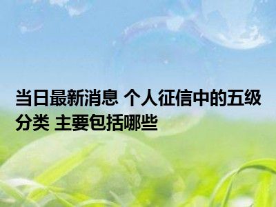 个人征信中的五级分类 主要包括哪些现在是大家比较关注的,因为目前个人征信中的五级分类 主要包括哪些的热度是相对比较高的,那么既然大家对此都比较感兴趣,小S也是特地到网上去查找了一些相关的信息,下面就由小S来把这些信息来分享给大家一起查阅吧。