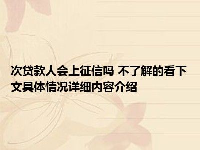 想必大家现在对于次贷款人会上征信吗 不了解的看下文方面的消息都是比较想了解的吧,那么针对于次贷款人会上征信吗 不了解的看下文方面的消息,小西自然是收集了一些相关方面的消息,那么如果您感兴趣的话,可以看下下面小西为大家收集到与次贷款人会上征信吗 不了解的看下文相关的消息吧。