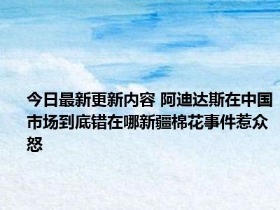 目前阿迪达斯在中国市场到底错在哪新疆棉花事件惹众怒的关注度特别高,热度非常高,这也证明大家现在都在关注这个事情,那么具体的阿迪达斯在中国市场到底错在哪新疆棉花事件惹众怒的事情是怎么回事呢,小编收集了一些相关的内容来给大家一起查阅一下把。