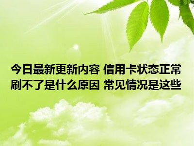 目前信用卡状态正常刷不了是什么原因 常见情况是这些的关注度特别高,热度非常高,这也证明大家现在都在关注这个事情,那么具体的信用卡状态正常刷不了是什么原因 常见情况是这些的事情是怎么回事呢,小编收集了一些相关的内容来给大家一起查阅一下把。