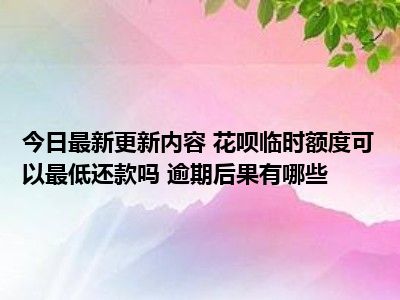 目前花呗临时额度可以最低还款吗 逾期后果有哪些的关注度特别高,热度非常高,这也证明大家现在都在关注这个事情,那么具体的花呗临时额度可以最低还款吗 逾期后果有哪些的事情是怎么回事呢,小编收集了一些相关的内容来给大家一起查阅一下把。