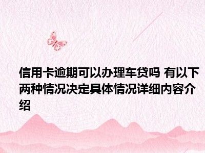 导读 想必大家现在对于信用卡逾期可以办理车贷吗 有以下两种情况决定方面的消息都是比较想了解的吧,那么针对于信用卡逾期可以办理车贷吗 有...