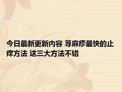 导读 目前荨麻疹最快的止痒方法 这三大方法不错的关注度特别高,热度非常高,这也证明大家现在都在关注这个事情,那么具体的荨麻疹最快的止痒...