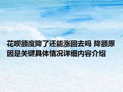 想必大家现在对于花呗额度降了还能涨回去吗 降额原因是关键方面的消息都是比较想了解的吧,那么针对于花呗额度降了还能涨回去吗 降额原因是关键方面的消息,小西自然是收集了一些相关方面的消息,那么如果您感兴趣的话,可以看下下面小西为大家收集到与花呗额度降了还能涨回去吗 降额原因是关键相关的消息吧。