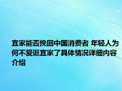 想必大家现在对于宜家能否挽回中国消费者 年轻人为何不爱逛宜家了方面的消息都是比较想了解的吧,那么针对于宜家能否挽回中国消费者 年轻人为何不爱逛宜家了方面的消息,小西自然是收集了一些相关方面的消息,那么如果您感兴趣的话,可以看下下面小西为大家收集到与宜家能否挽回中国消费者 年轻人为何不爱逛宜家了相关的消息吧。
